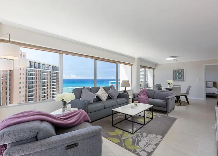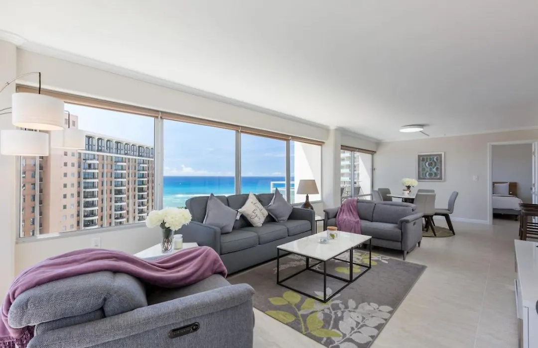 寝室2室のホノルル26 Free Parking Ocean Front 2Br-Waikiki Ala Moanaアパートメントは、デューク・カハナモク・ラグーンから徒歩でわずか6分で、ホノルル国際空港から5キロメートルの場所にあります。 フォート・デ・ルッシー・ビーチパークほんの数分に位置する116m²のアパートで、顧客はプールを利用できます。